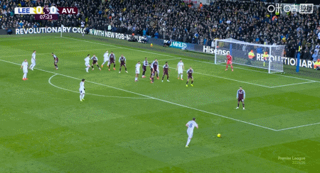 第75分钟,摩根-罗杰斯任意球直接破门完成双响,维拉2-1利兹联