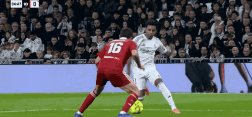 第37分钟,皇马获得前场右侧的任意球,居莱尔将球开出,贝林厄姆在防守球员的干扰下,头球破门,皇马取得领先。